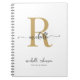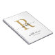 Modern, Chic, Elegant White and Gold Monogram Initial Name Feminine Signature Script Spiral Notebook. This simple minimalist plain colour design featuring your first name in a pretty hand lettered style black swash tail font typography with gold monogram initial, full name and text line template on white colour background. Easy to personalise them. Great custom personalised girly gift for Birthday Party, Housewarming, Wedding, SWEET 16 Birthday party, Bridal shower, BABY shower, back to school, business, professional and for anyone who loves pretty elegant minimalist style.