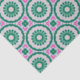 Seamless decorative geometric pattern featuring geometric shapes in green and pink on a white background.