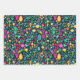 Girly Floral Dinosaur Silhouette Maximal Folk wrapping paper.