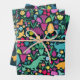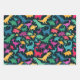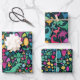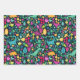 Girly Floral Dinosaur Silhouette Maximal Folk Wrapping Paper Sheet