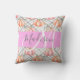 Girly Floral Grey Pink Peach Pumpkin Monogram Name Cushion