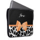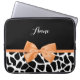 Girly Giraffe Print Orange Ribbon Bow With Name Laptop Sleeve