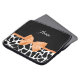 A girly black and white giraffe print 15'' laptop sleeve with a cute orange ribbon tied into a stylish bow. Personalise this trendy animal print design by adding your name. Flat printed image, not actual bow.