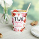 For the little girl who is celebrating her 2nd birthday. Easy to personalise with a name which will appear on the front and back. This super cute girly girls ice cream paper cup is going to go down a treat. Perfect for summer but if you're serving up sweet treats at the party then the 'two sweet' theme is suitable for any time of the year.