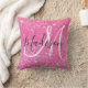 Girly Glam Hot Pink Glitter Sparkles Monogram Name Cushion