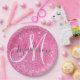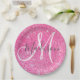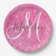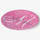 Girly Glam Hot Pink Glitter Sparkles Monogram Name Paper Plate