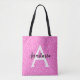 Girly and glam hot pink glitter sparkles monogram name and initial tote bag. Personalise with your name and monogram. You can even change the text colour and font style and size using the customise option!
