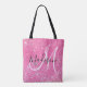 Girly Glam Hot Pink Glitter Sparkles Monogram Name Tote Bag