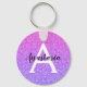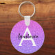 Girly and glam ombre purple glitter sparkles monogram name and initial keychain. Personalise with your custom name in black and your monogram initial in white. You can change the text colour and font style and size using the customise option.