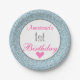 Girly Glam Pink & Light Blue Glitter 1st Birthday Paper Plate