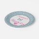 Girly and glam light blue glitter sparkles 1st birthday paper plate with hot pink and grey writing. You can easily add the name of your choice and change the colour and font using the customise option!