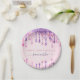 Girly Glam Pink Purple Glitter Drip 13th Birthday Paper Plate