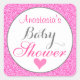 Girly & Glam Princess Hot Pink Glitter Baby Shower Square Sticker
