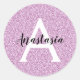 Girly Glam Purple Glitter Sparkles Monogram Name Classic Round Sticker