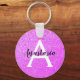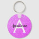 Girly and glam purple glitter sparkles monogram name and initial keychain. Personalise with your custom name in black and your monogram initial in white. You can change the text colour and font style and size using the customise option.