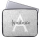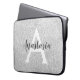 Girly and glam silver glitter sparkles monogram name and initial computer sleeve. Personalize with your custom name in gray and your monogram initial in white. You can change the text color and font style and size using the customize option.