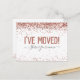 I've moved elegant script typography moving announcement postcard. Simple girly glitter design.