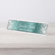 Girly Glittery Silver Faux Aqua Teal Foil Desk Name Plate