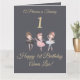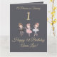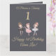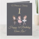 Girly Gold Grey Ballerina Princess 1st Birthday Card