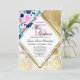 This modern, luxury, girly, and elegant, "Mis Quince," quinceañera birthday party invitation is perfect for the classy and stylish event. It features hand-painted blush pink, bubblegum pink, navy blue, and teal green flowers and leaves on a white background with faux printed gold foil, marble, and flower silhouette triangle corners and a black diamond border design on a simple white background. It's artsy, unique, pretty, contemporary, and original. Stylise your invites with this hand-painted piece done by the artist of La Femme, Rachel Matheney.