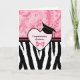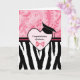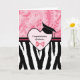 A girly graduation congratulations card with a cute pink and black background of a trendy zebra print on the bottom and a pink paisley style floral pattern on the top. Written in the center of a heart with a graduation cap is: Congratulations Graduate.