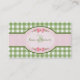 Girly Green Gingham Monogram Country Pink Ribbon Business Card