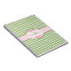 A cute country style green gingham monogram notebook with a pink gingham label and a girly filigree pink ribbon. Personalize by adding your name and initials. Will appeal to the stylish and feminine girl.