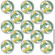 This set of 13 team colours volleyball stickers (each approximately 3 inches) for girls features volleyballs with green, gold and white panels (the green and gold panels are blended with an artsy, girly floral pattern) - customise each sticker with a player's name & jersey number plus school or club name and mascot name - economically priced at a little more than $1 per 3" sticker - by katz_d_zynes