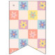 This groovy girls' 2nd birthday bunting captures retro 70s vibes with a cute pink theme, floral accents, and a pastel chequered pattern. Perfect for a "Two Groovy" boho birthday,
