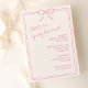 Girly Hand Drawn Bow Elegant Pink Bridal Shower Invitation