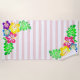 Tropical beach towel with hawaii hibiscus on pink stripes.