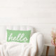 Simple yet beautiful hello in elegant white script on a pretty mint green background.
