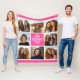 Girly Hot Pink 8 Square Photo Collage Monogram Fleece Blanket