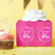 This trendy and unique glam girly design features a pattern of circles, each with a customizable monogram in pale pink in the center in popular serif typography along with a customizable name in popular script with a hand-lettered look in pinkish white. The circular monogram background includes a hot pink fuchsia background surrounded by a magenta brushed metal frame. Behind the circles is a background of glimmering fuchsia diamonds for added glitter and sparkle. This paper works great for birthdays, Christmas, or any occasions or holidays where you want personalized wrapping paper. You can personalize this item by changing the monogram and name in the product template.