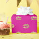 This wrapping paper features girly faux gold foil kiss lips pattern on hot pink background.