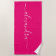 Stylish beach towel with an elegant, white girly script name on a hot pink background. Personalise with your name.
