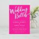 This girly wedding invitation features a hot pink and white colour scheme. It is paired with sans serif and script fonts, laying out the funny pun heading 'Wedding Belles', the participant's names, and details of the wedding, including the location, date and time. The stand-out features are the large headline, and the modern monogram on the back. ⚠ The heading font is Singapore. To use special characters, copy them from www.zazzle.com/singapore_font_ligatures_poster-228436244039070899 ⚠ Browse my collection for matching envelopes and stationery. ••• For more wedding suites, visit my store Zazzle.com/EventsByJessicaAmber