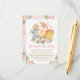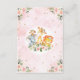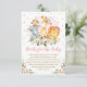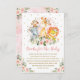This feminine design features a group of adorable jungle animals surrounded by gorgeous watercolor blush pink roses and gold glitter confetti