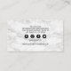 Elegant makeup artist business cards featuring a modern marble background, pretty purple watercolor flowers, luxurious purple glitter eyes & lashes, a handwritten script, and a professional text template that is easy to personalise. The social media icons can be removed by clicking on personalise and then customise further.