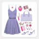 Personalize your laptop, water bottle, or planner with these adorable purple fashion set stickers. This decorative graphic features a stylish polka dot dress surrounded by makeup palettes, high heels, and girly beauty essentials. The vibrant pink and lavender aesthetic is perfect for scrapbooking or decorating your bullet journal. These high quality fashion stickers are a fun way for beauty bloggers and students to express their unique style and love for glamour.
