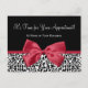 A trendy black and white leopard print hair and beauty salon appointment reminder postcard with a girly red ribbon tied into a cute bow. Personalise this stylish animal print design by adding the name of hairstylist or beautician. Flat printed image, not actual bow.