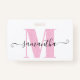 Girly Light Pink and White Polka Dot Monogram ID Badge