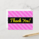 This fun, girly postcard design features rows of light pink coloured heart shapes within dark pink coloured stripes, and dark pink coloured heart shapes within light pink coloured stripes. It also features the appreciative message "Thank You!" on the front in yellow script-like text, along with a customised message of thanks on the back.