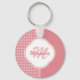 A girly light pink keychain with a houndstooth pattern in vertical stripes. Personalise this contemporary design in a trendy shade of pink by adding the name and monogram initials of the fashionable young woman.