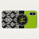 Girly Lime Green Black Damask Pattern Monogram Case-Mate iPhone Case