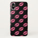 Girly Lips Hot Pink And Black Kiss Pattern Case-Mate iPhone Case