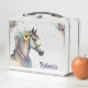 Pretty and girly mystical and magical horse with flowers in its purple mane and sparkling glitter. Easily personalise with her name in a trendy purple font. This is one in a collection of colourful horse designs for back to school.