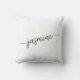 Girly Minimalist Simple Clean Black And White Monogram Name Script Custom Personalised Pillow. These design featuring your first name in a pretty hand lettered style swash tail font signature typography (or calligraphy) black script on white colour background. These are easy to customise it. Great stylish feminine housewarming gift, also for birthday, mother’s day, wedding, sweet 16 birthday party, bridal shower, baby shower, for graduation and It’s for the girl who loves unique stylish things.