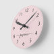 Girly Simple Minimalist Blush Pink Monogram Name Script Custom Personalised Round Clock. These design featuring your first name in a pretty hand lettered style swash tail font signature typography on blush pink rose or dusty pastel pink. These are easy to customise it. Great stylish feminine housewarming gift, also for birthday, mother’s day, wedding, bridal shower, sweet 16 birthday party and baby shower, graduation and It’s for the girl who loves unique sparkle stylish things.