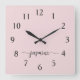 Girly Simple Minimalist Blush Pink Monogram Name Script Custom Personalised Square Wall Clock. These design featuring your first name in a pretty hand lettered style swash tail font signature typography on blush pink or dusty pink. These are easy to customise it. Great stylish feminine housewarming gift, also for birthday, wedding, bridal shower, mother’s day, sweet 16 birthday party and baby shower, graduation and It’s for the girl who loves unique sparkle stylish things.
